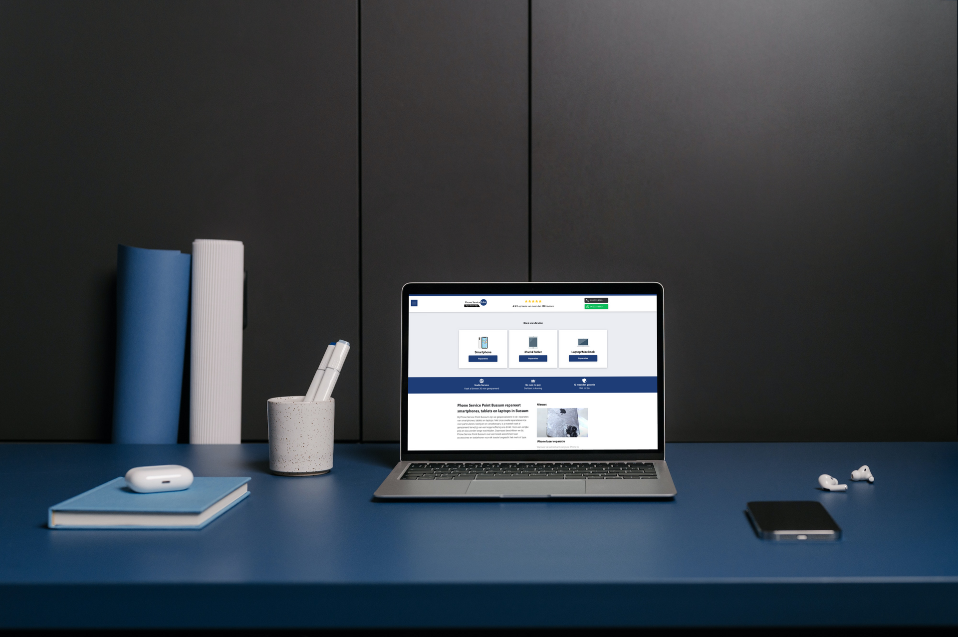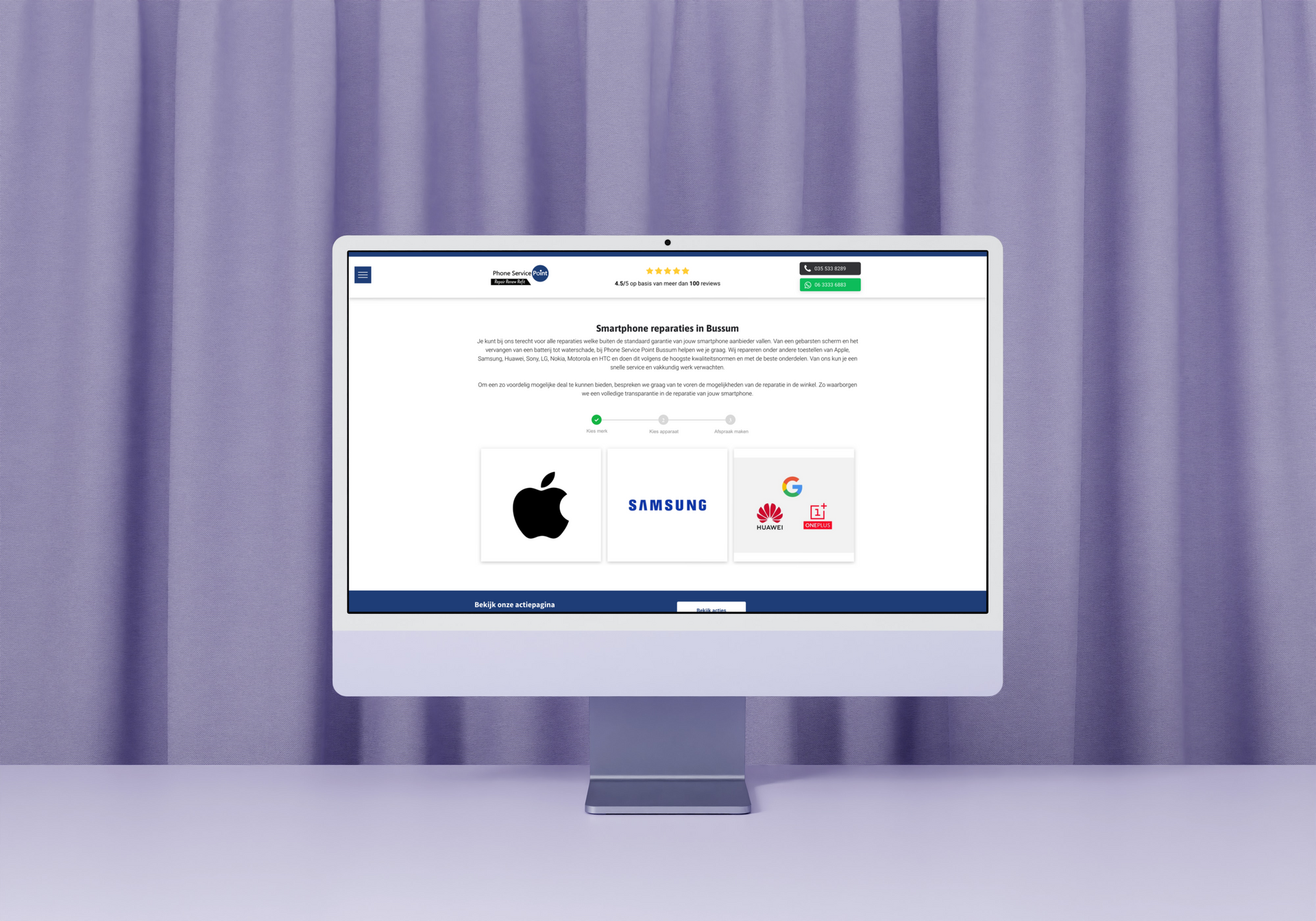 We delen graag onze samenwerking met Patson Hamidi, eigenaar van Phone Service Point Bussum. Via een gemeenschappelijke kennis werden wij met Patson in contact gebracht, omdat hij op zoek was naar een gebruiksvriendelijke website waar klanten eenvoudig een reparatieafspraak konden inplannen voor hun smartphones. Het grootste uitdaging was om de klanten duidelijk te informeren over de kosten, die verschillen per smartphone model en dat zijn er nogal wat.